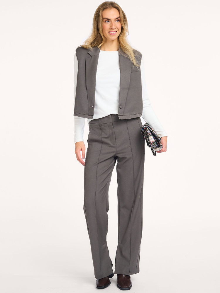 Yaya Wide leg trousers with decorative seams and slit | Orangebag